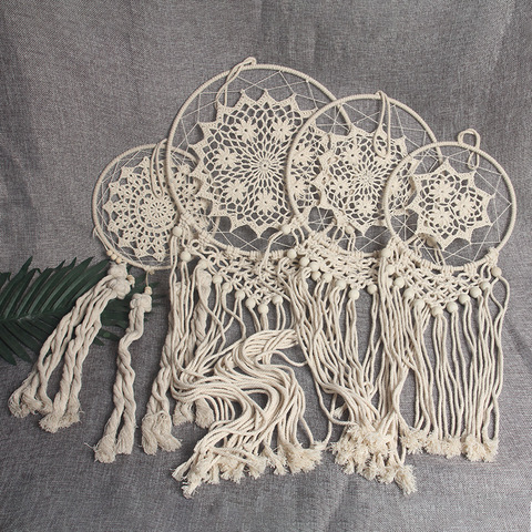 보헤미안 마크라메 짠 벽걸이, 긴 술이 달린 크로셰 초승달 스타 드림 캐쳐