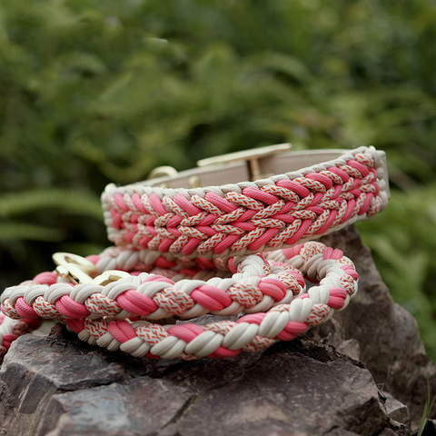 Paracord paracord ถักด้วยลูกปัดปลอกคอสุนัข paracord macrame สายจูงสุนัขและปลอกคอ