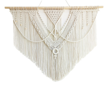 Macrame ผ้าม่านผูกด้านหลังโบโฮตกแต่งบ้านโบฮีเมียนทำมือเชือกผูกใบ macrame